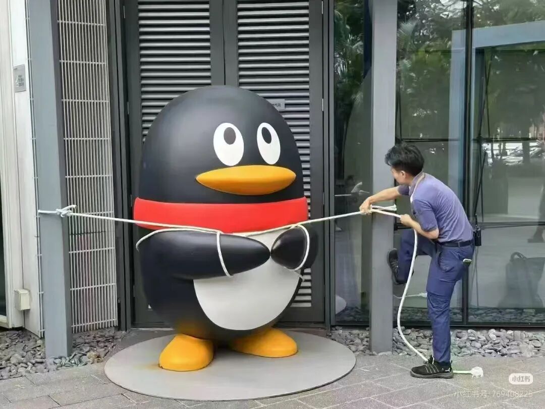 9月23日,有网友晒出图片显示,腾讯总部基地深圳滨海大厦门前的企鹅雕塑工作人员绑起来防台风。当日下午4时28分,“腾讯招聘”发布了工作人员将门口的企鹅“五花大绑”图片,并配文“我真的拴Q”。