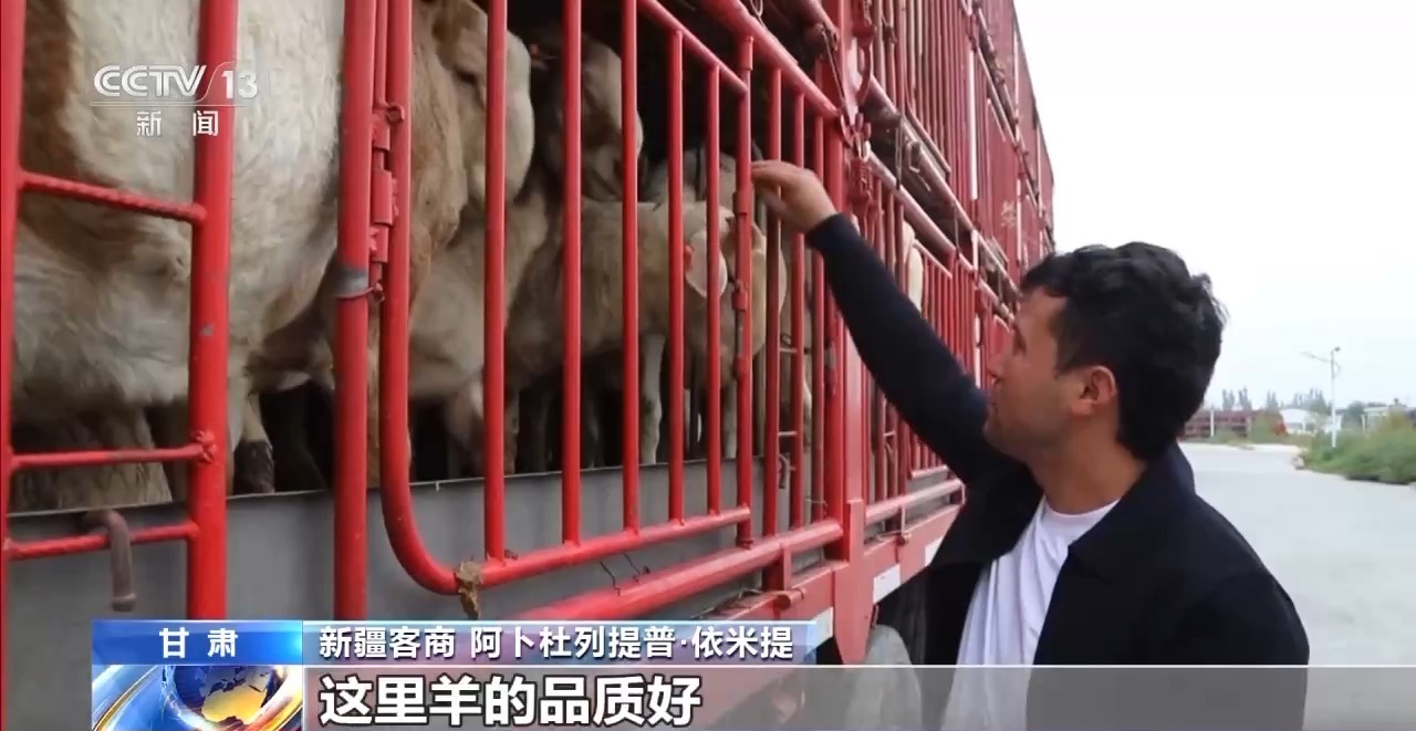 新疆客商阿卜杜列提普·依米提:我在这里买羊已经三年了,这里羊的品质好,新疆人也是很喜欢吃,我一天收两三车羊。