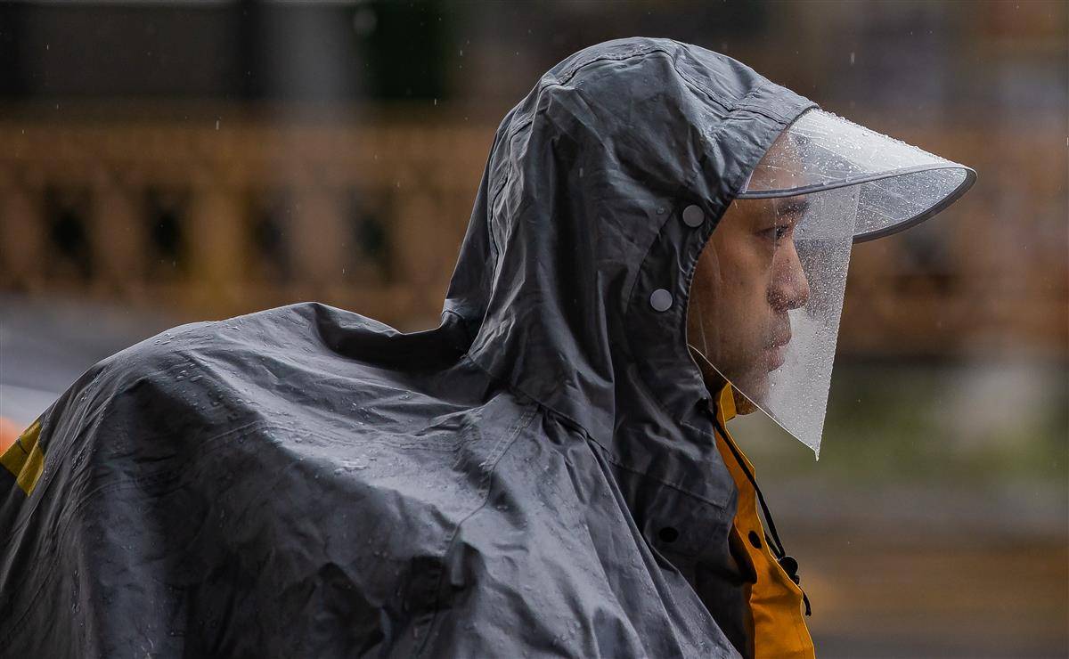 9月24日,武汉黄浦路,冒雨出行的市民。