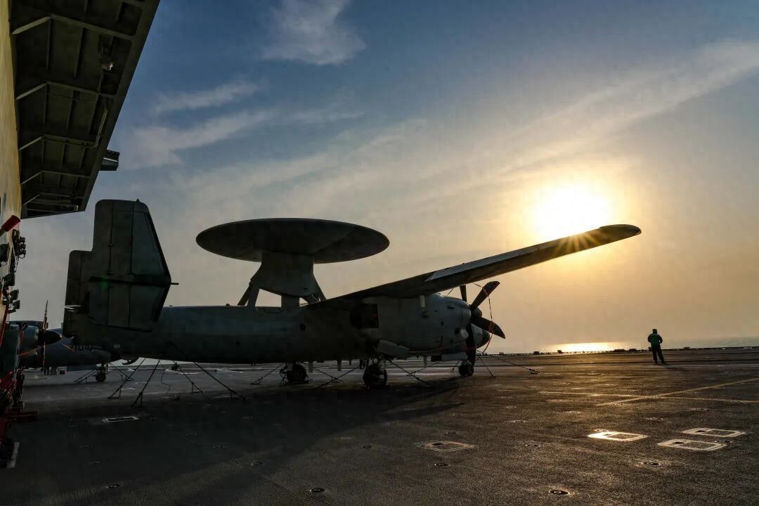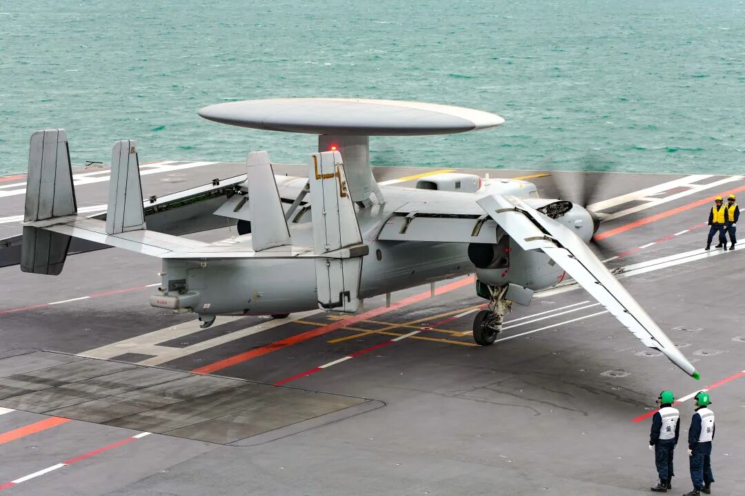 清晨,在甲板等待起飞的空警-600预警机。 岳书华 摄