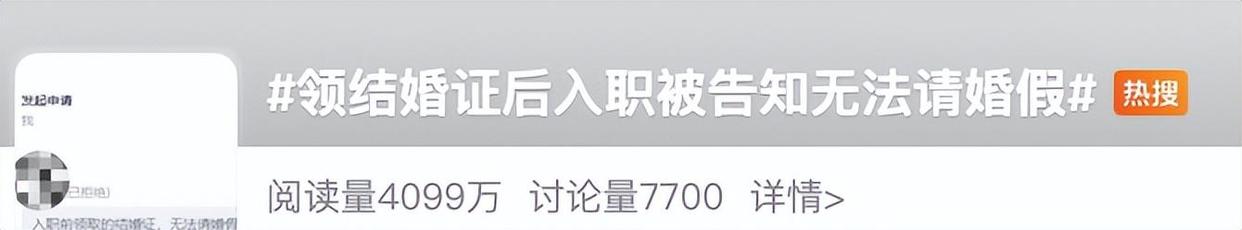 近日,话题“领结婚证后入职被告知无法请婚假”登上热搜,引发网友热议。