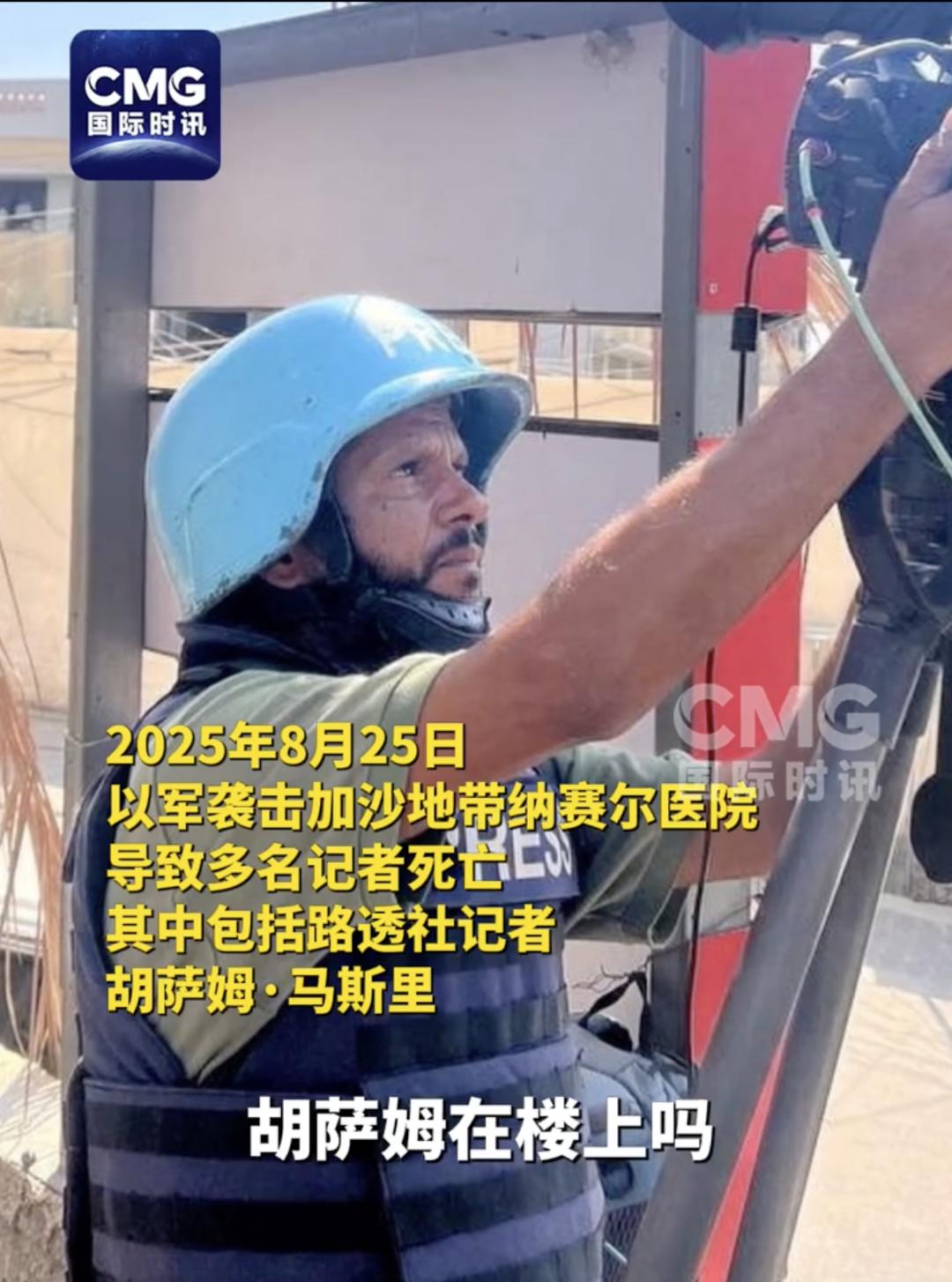 红星新闻2025-09-27 22:03四川月25日,以色列军队对加沙地带的纳赛尔医院连续发动数轮袭击,造成包括5名记者在内的至少20人死亡,其中就有路透社的摄像记者胡萨姆·马斯里。以军在袭击后的声明中称,他们打击的是“哈马斯在医院内安放的摄像机”,“打击基于情报和军事必要性,目标是为了‘消除威胁’”。