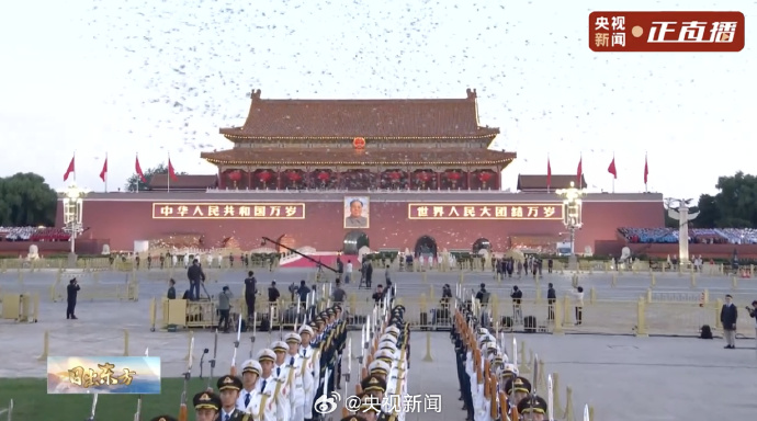 10月1日,天安门广场举行国庆升旗仪式,放飞1万羽和平鸽。