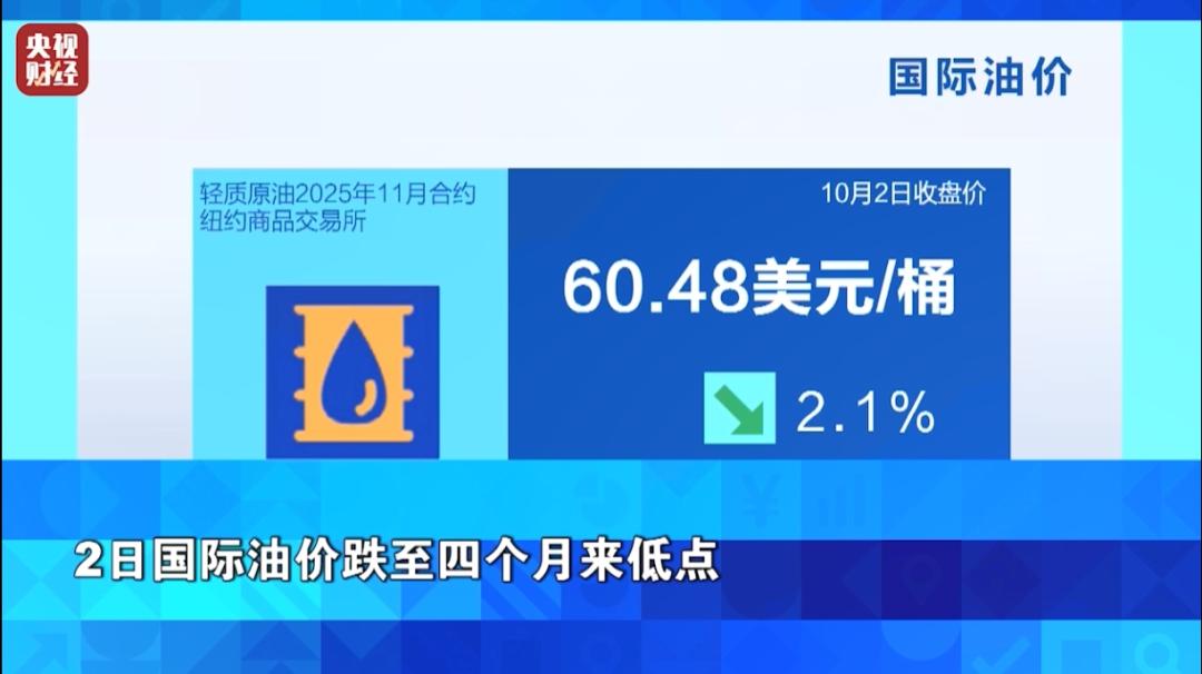 原油期货方面,近期数据显示全球主要石油消费国的制造业活动放缓,加剧了外界对原油需求的担忧。此外,美国政府停摆也对油价形成利空。多重因素打压,国际油价周四跌至四个月来低点。截至当天收盘,纽约商品交易所11月交货的轻质原油期货价格收于每桶60.48美元,跌幅为2.1%;12月交货的伦敦布伦特原油期货价格收于每桶64.11美元,跌幅为1.9%。