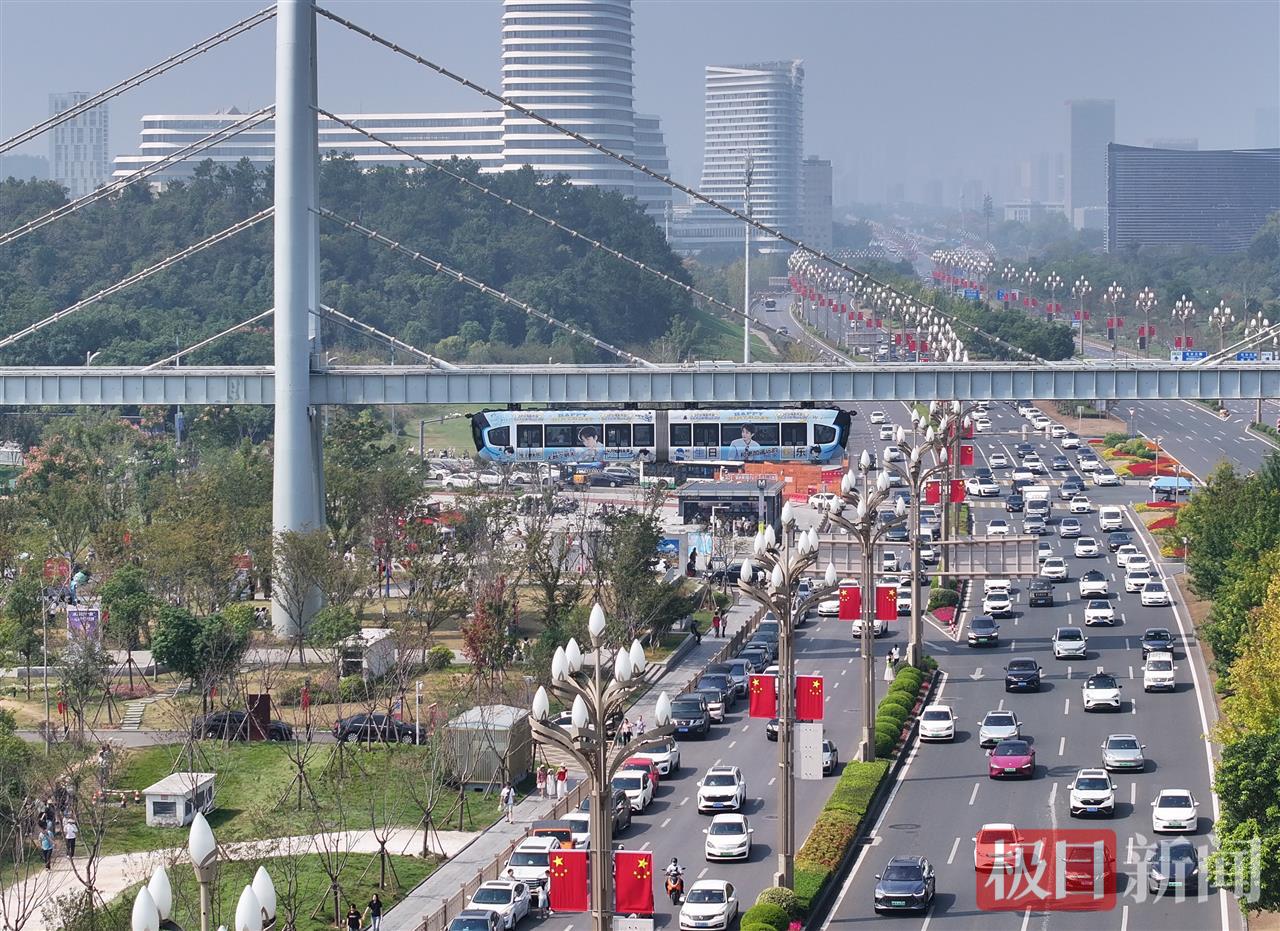国庆假期,光谷中央生态大走廊与空轨五大站点组成的“欢乐矩阵”持续发热,让市民、游客体验不一样的“科技+生态”之旅。