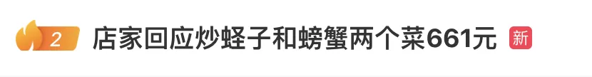 10月7日,“店家回应炒蛏子和螃蟹两个菜661元”相关话题登上热搜。