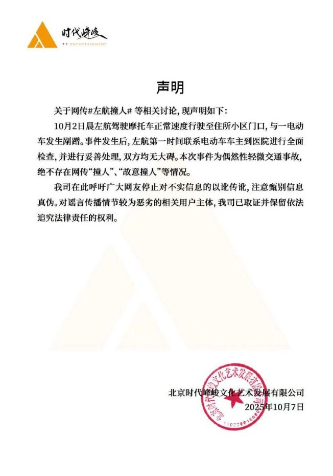 关于网传#左航撞人#等相关讨论,现声明如下: