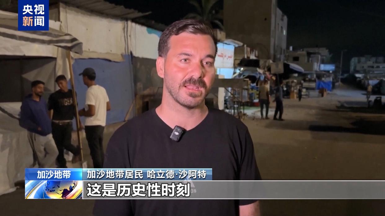 加沙地带居民 哈立德·沙阿特:这是历史性时刻,是巴勒斯坦民众在经历两年被肆意施加的杀戮与种族灭绝后,长久期盼的时刻。