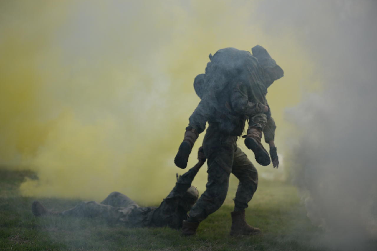 突然,现场警报声响起,为解救被困“人质”,特战小队火速集结,上演堪比电影大片的营救行动……战术综合演练环节将现场氛围推至高潮。只见队员们配合默契、动作连贯,先后完成战术搜索、无人机侦察、无声击杀、手榴弹投掷、轻武器射击及受伤“战友”抢救搬运等课目,过硬的战术素养赢得现场阵阵掌声。“训练中我们每一个动作都反复打磨,就是想以最好的状态迎接授衔,扛起这份军人责任。”参与特训的新学员施兴江说。