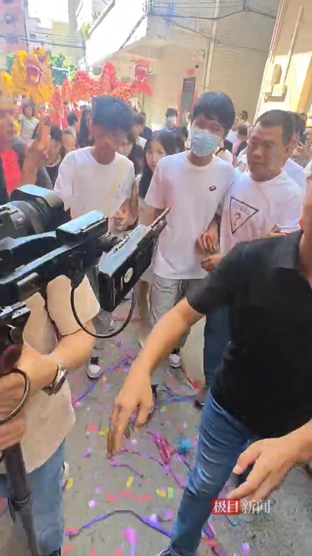 19日一早,极目新闻记者现场看到,喜庆的锣鼓已经敲响,鞭炮也已经响起来,现场热闹又喜庆。邓惠东见到亲友就大声告诉大家:“儿子真找到了,回家。”叶锐聪回到家后进行了认祖归宗的仪式,接下来还将参加认亲感谢宴。