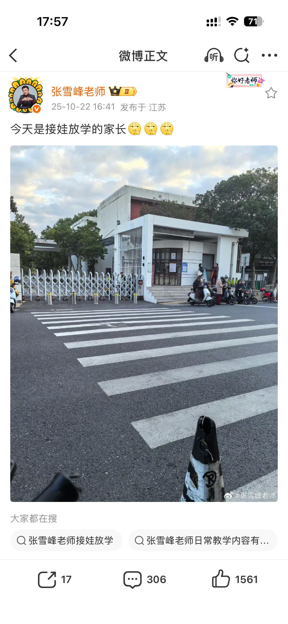 10月22日16时41分,知名高考志愿导师张雪峰的微博账号恢复更新,称“今天是接娃放学的家长”。这是他账号被禁止关注28天后的第一条微博,微博账号也可被用户正常关注。