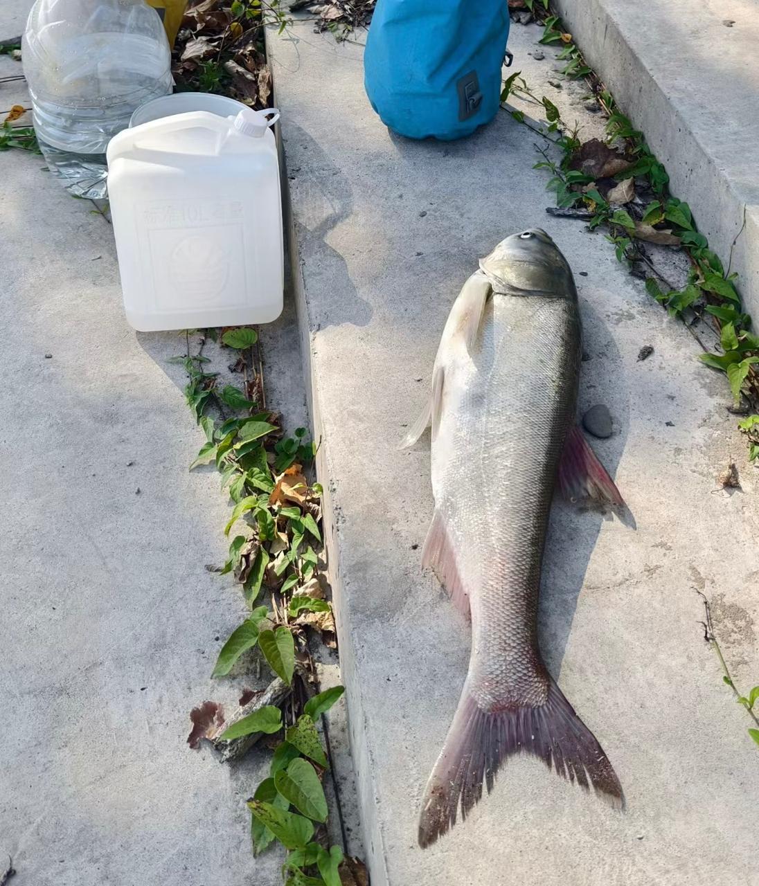△吴晓亮捡到被机动船桨叶打伤的鱼。