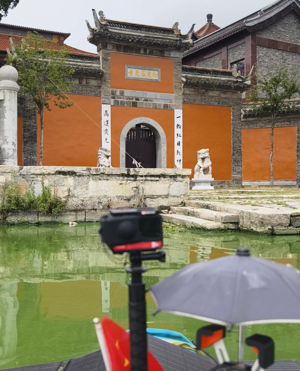漂流至瓜州运河时,吴晓亮“偶遇”了高旻寺。高旻寺位于扬州市邗江区汊河街道三汊河口西侧,是清代扬州八大名刹之首,寺院的老山门就正对着瓜洲运河。在碧波荡漾的运河上,吴晓亮看到了老山门上的汉白玉石额,上面有康熙皇帝手书的“敕建高旻寺”几个大字。在运河上,还能看见高旻寺代表性的天中塔。
