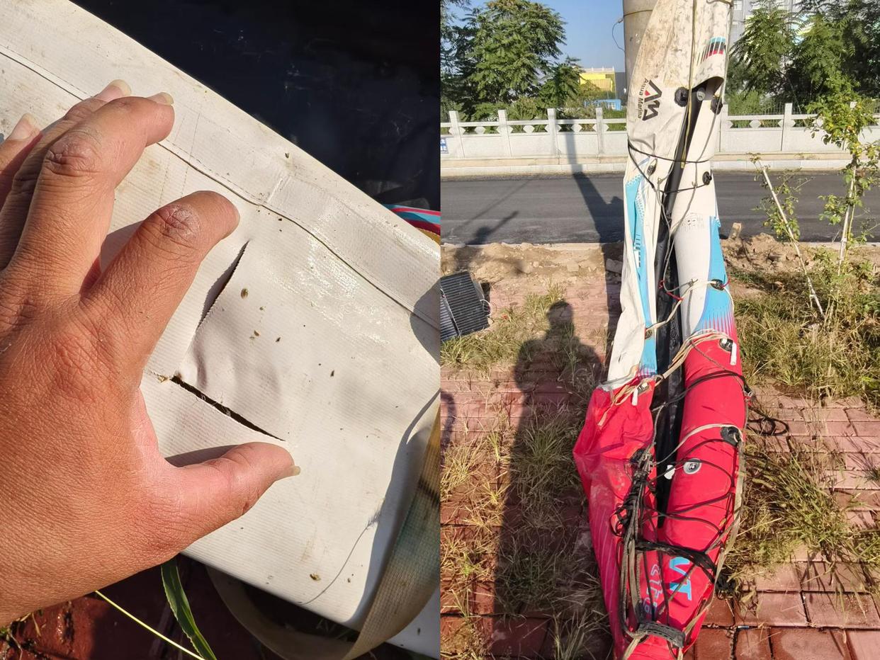 △皮划艇被划破。