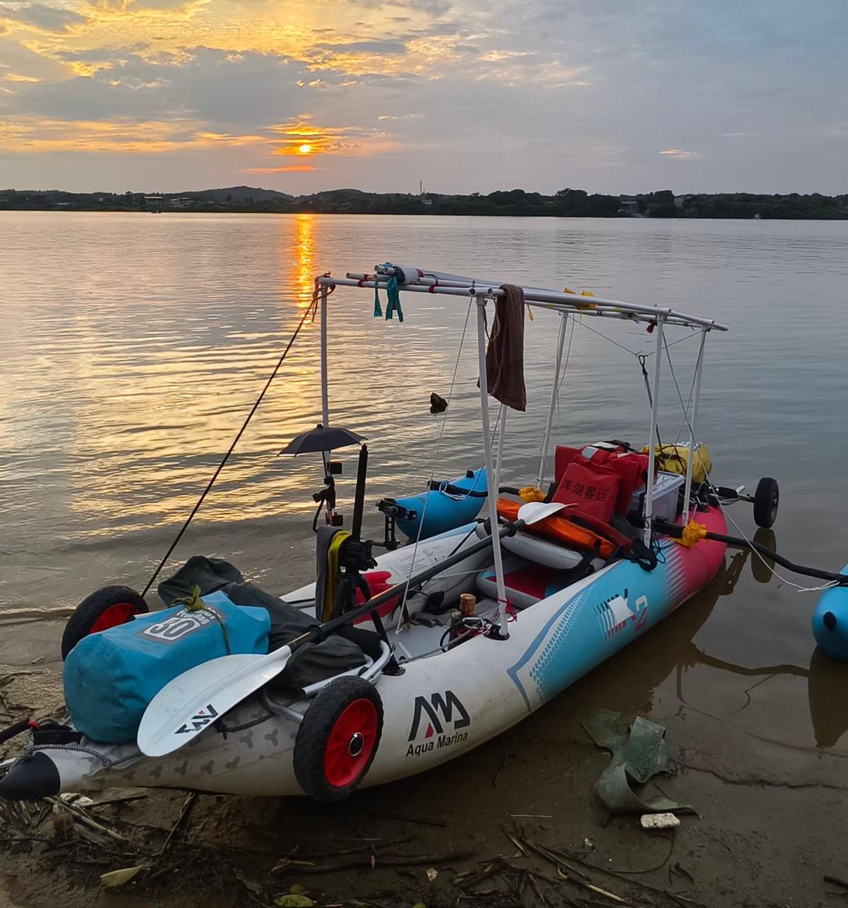 这次行程,吴晓亮给自己定的预算是2000元。他原本计划要打卡81个城市56个重点自然、人文、历史古城、遗迹、老码头、老集市等景点景区,总路程4004公里。但因为费用太少,漂流过程中皮划艇多次破损,修补了23次,加之遇到下雨、刮风等天气,他只能缩减前往景区打卡的门票支出、生活支出。原本计划每天漂流22公里,在实际情况中,他提升到了每天漂流40-75公里、持续8-11个小时。除了在陆地上推车前行的时间,他在水上漂流的总时长为146天,比原计划更早完成漂流。
