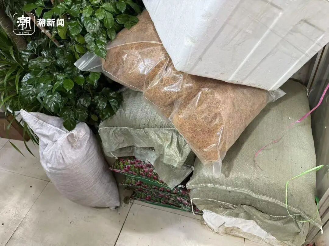 在另一家临街花卉店铺内,记者看到其售卖的唯一一款营养土编织袋背面的产品说明里写着“优选富含有机物质的食用糟粕、木屑、珍珠岩、蚯蚓土、蛭石、腐殖酸、草木灰等为原料”,但当记者想要查看袋中的土壤样品时,遭到了店主的拒绝。