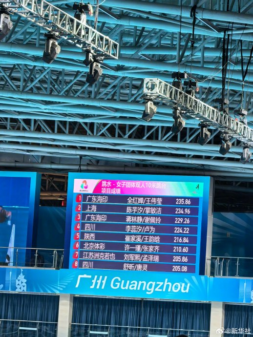 新华社广州11月2日电 在第十五届全国运动会跳水项目比赛中,广东队全红婵/王伟莹夺得女子团体双人10米跳台冠军。