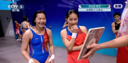 广东队全红婵/王伟莹获十五运会跳水女子团体双人10米跳台冠军