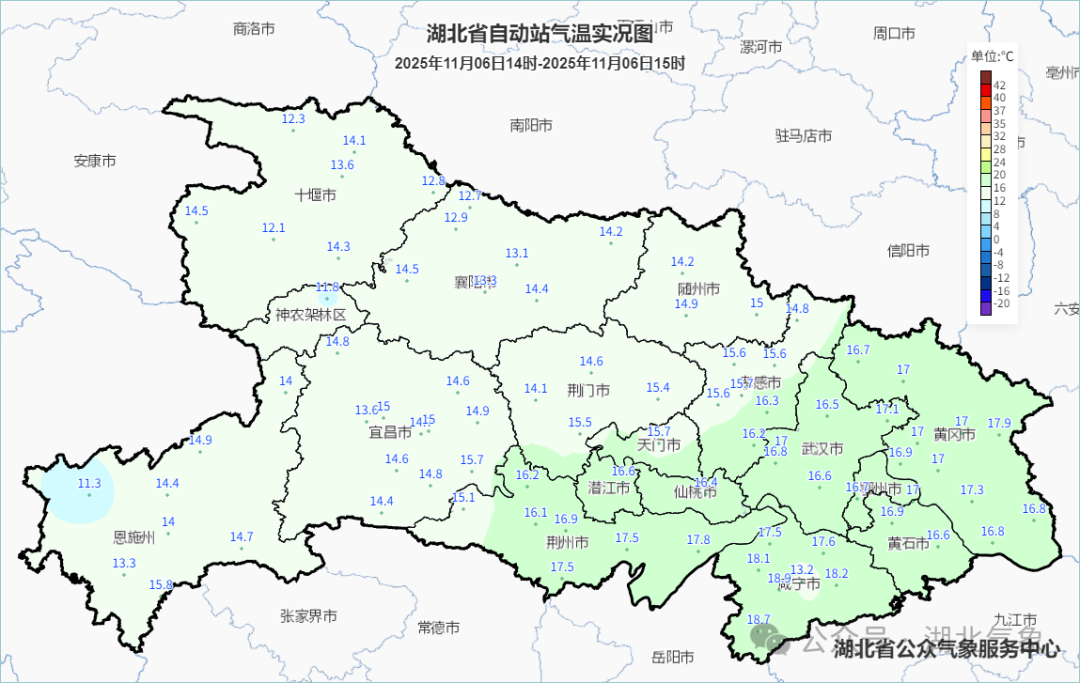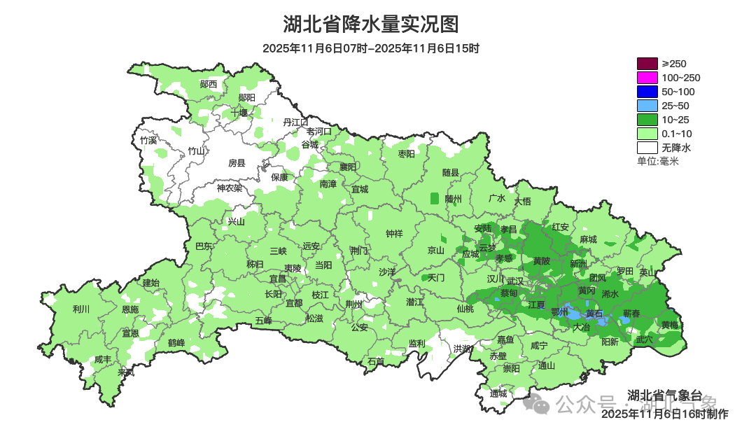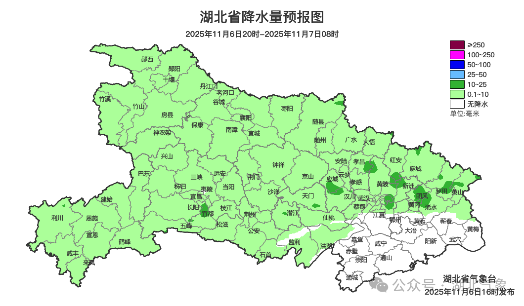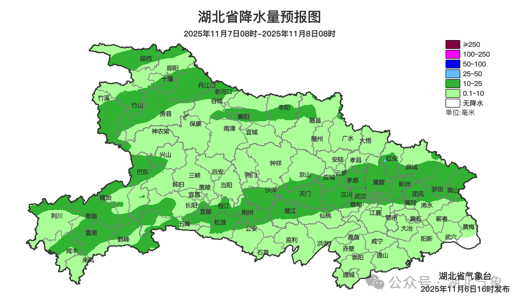预报来源:湖北省气象台2025年11月6日16时预报