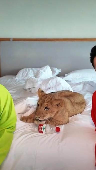 近日,江苏网友发视频称,宿迁一家酒店内提供小狮子叫醒服务。视频中工作人员牵着小狮子来到客房,孩子接过绳子走向屋内。网友们对此很感兴趣,纷纷询问地点。