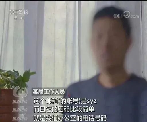 在央视披露的一起网络间谍案件中,某单位就是因工作邮箱用户名和密码设置过于简单(密码为办公室电话号码),从而被境外间谍情报机关成功猜解,最终导致近2000份文档资料被窃取(被窃资料中详细记录了当地的驻军分布信息)。