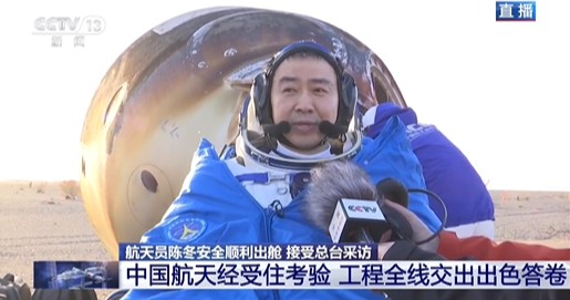 神舟二十号航天员陈冬、陈中瑞、王杰全部安全顺利出舱,健康状态良好