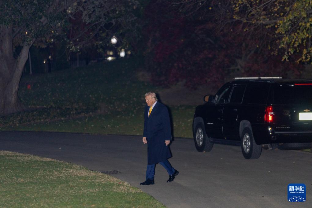 11月14日,在美国首都华盛顿白宫,美国总统特朗普在南草坪准备登机。新华社记者 胡友松 摄