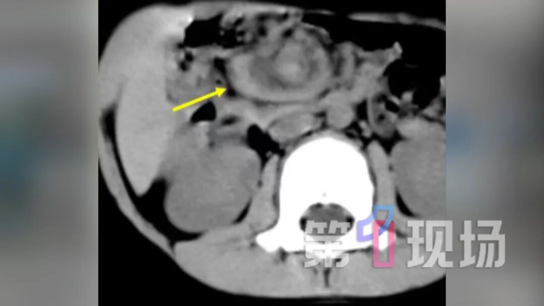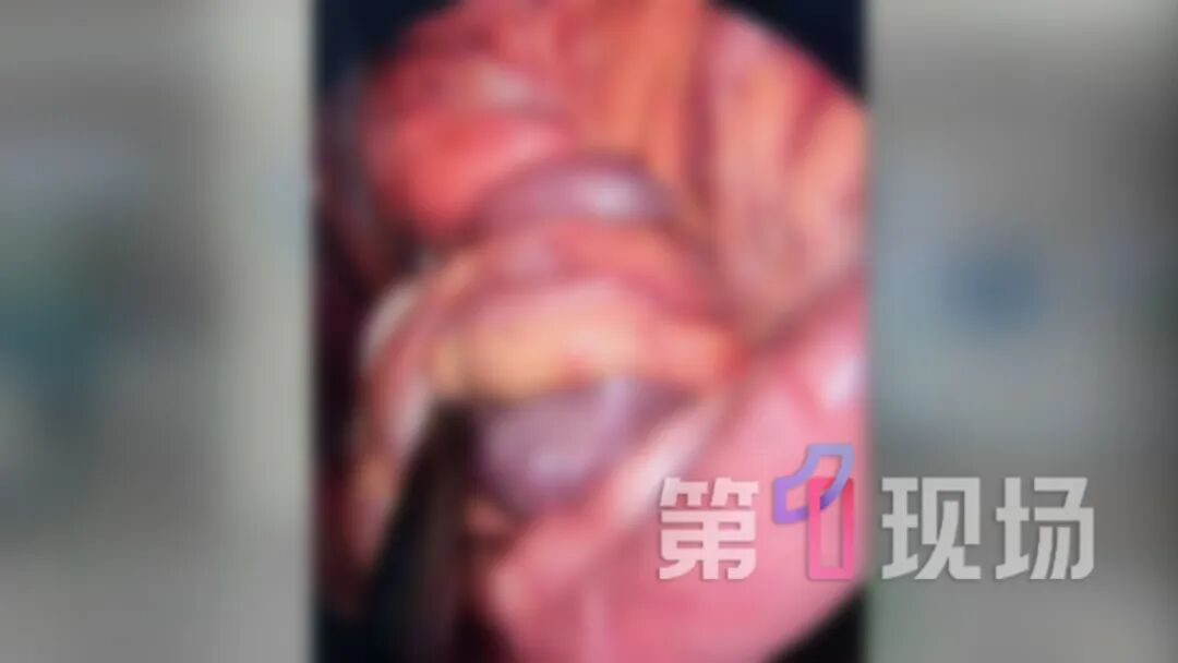 我们高度怀疑他是小肠扭转的情况。 CT做完后,当天晚上12点我们就把患者送到手术室做了腹腔镜的探查,证实了他是先天性肠旋转不良,伴有中肠扭转了720度,相当于肠子转了两圈。