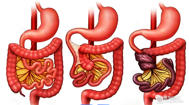 简单来说,就是全部小肠及根部血管像“拧麻花”一样发生扭转,导致肠管缺血坏死,肠穿孔引发腹膜炎危及生命。