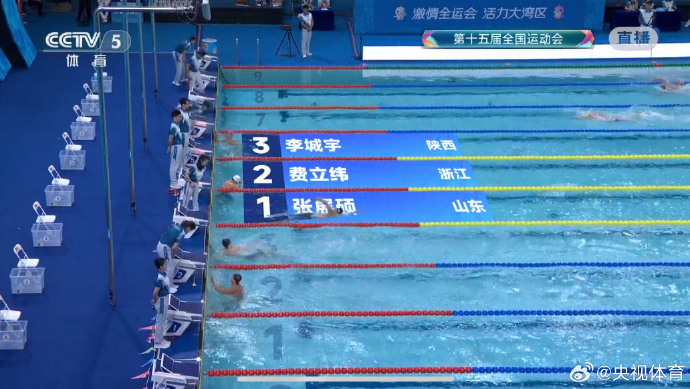 全运会男子1500米自由泳决赛,张展硕以14分52秒73的成绩成功夺冠。这是他在本届全运会的第5金。
