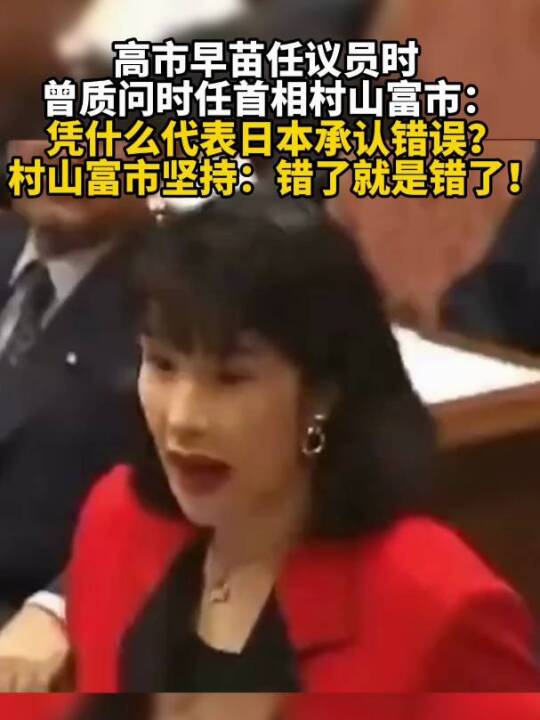 1994年,高市早苗就在国会公然质问时任首相村山富市为何承认当年的侵略战争是错误的。此外,她认为日本没有强制把朝鲜半岛居民带去日本,否认“慰安妇”的存在。