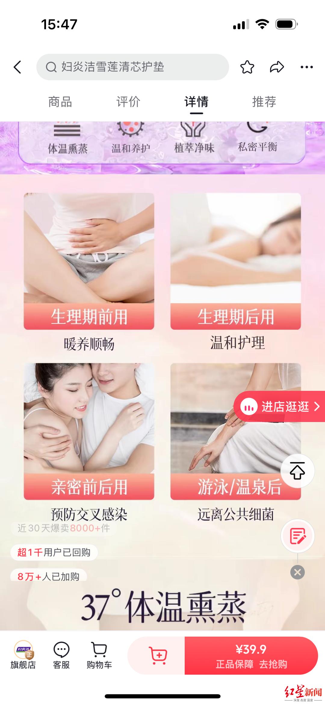 ▲雪莲清护垫的产品详情页信息