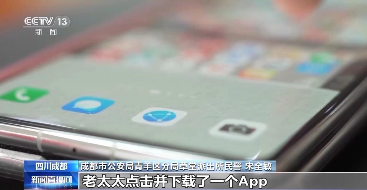 成都市公安局青羊区分局草堂派出所民警 宋全敏:以前电诈案也许还会要银行发来的验证码,老太太下载的这个App实际上就是一个共享屏幕的App,下载以后,手机上的内容对方都能看见。