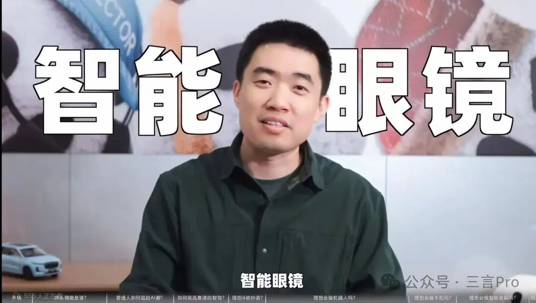 李想认为智能眼镜是理想汽车最好的人工智能的一个附件,希望理想的AI能力能够在理想汽车的用户生活中,有一个更全面的覆盖。