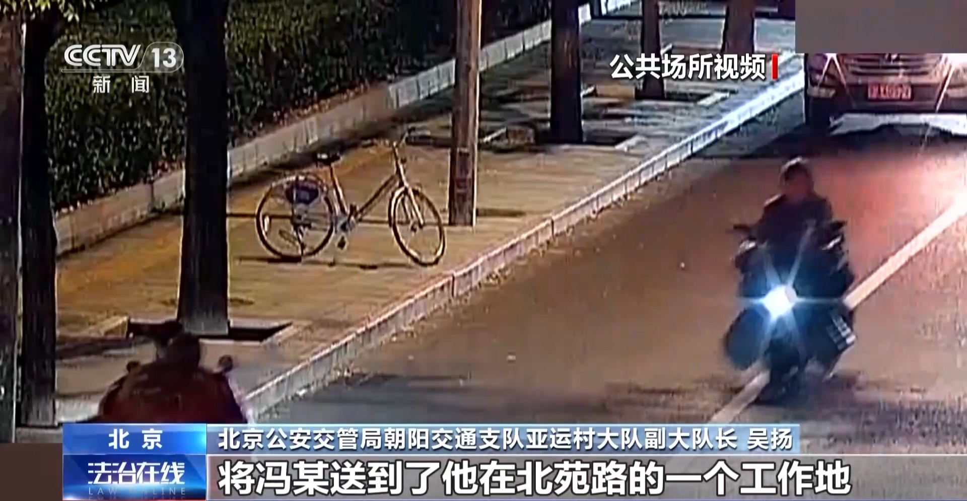 吴扬:其他三人拗不过冯某,还是冯某乘坐自己的电动车,由其中一人驾驶电动车,将冯某送到了他在北苑路的一个工作地。