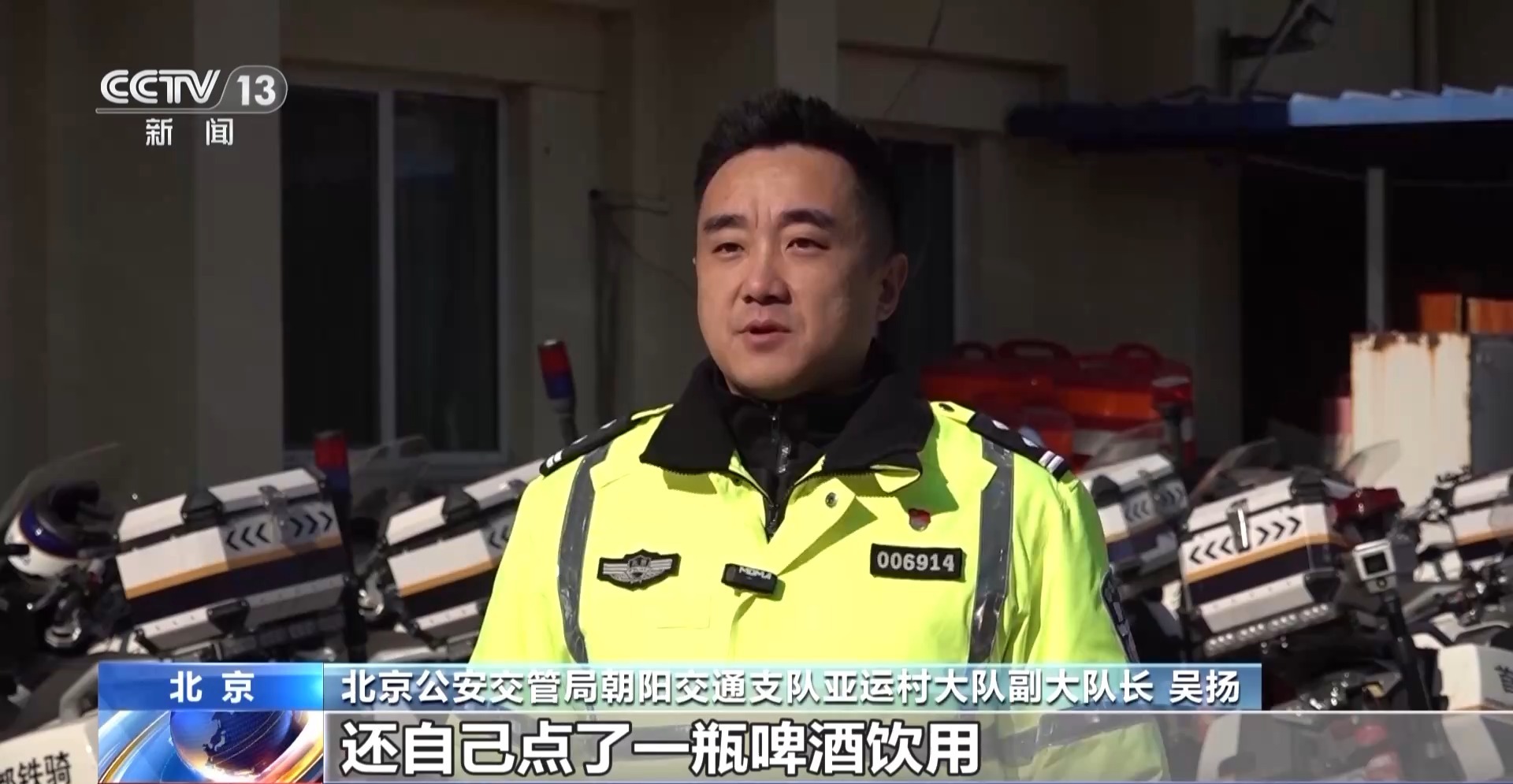 北京公安交管局朝阳交通支队亚运村大队副大队长 吴扬:四个人一共饮用了两瓶半白酒,冯某在饮用白酒以外,还自己点了一瓶啤酒饮用。