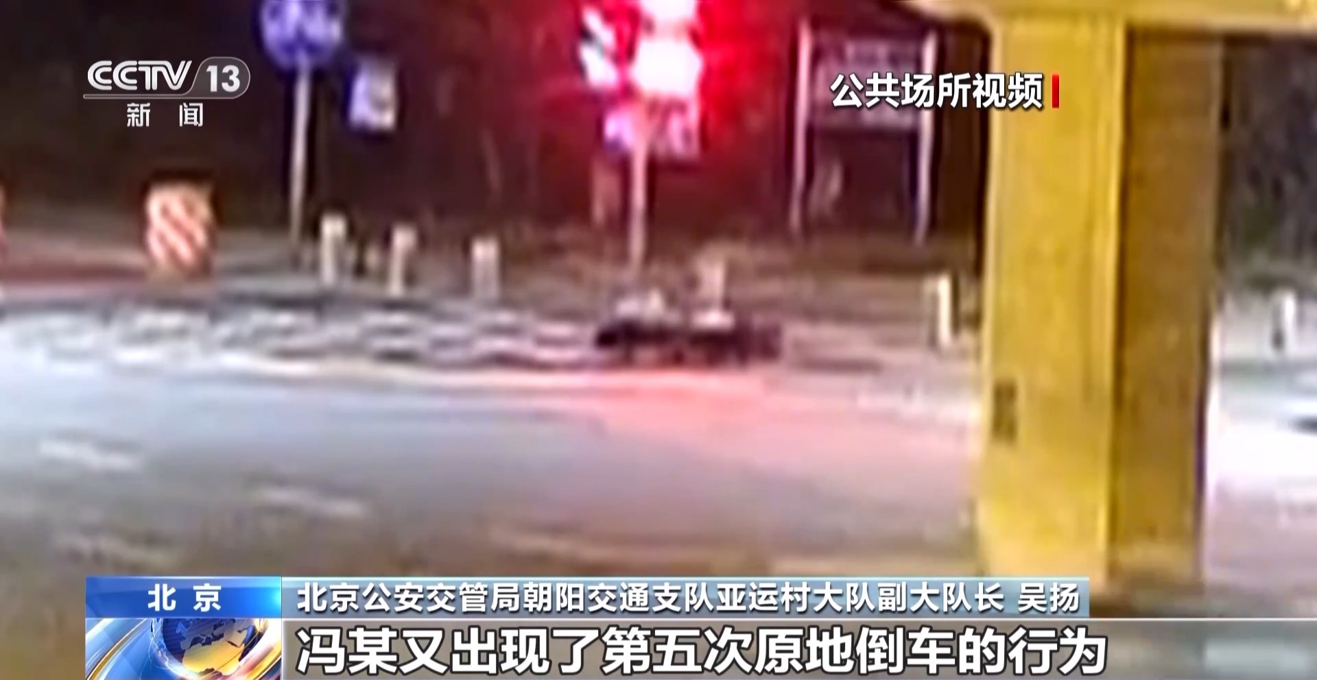 23点45分,在北五环仰山桥下他遇到了红灯。公共视频显示,冯某在该路口滞留了5分钟之久,其间,信号灯早已变换多轮,可他却并未及时驶离。类似的情况在行驶到下一路口时再次上演。
