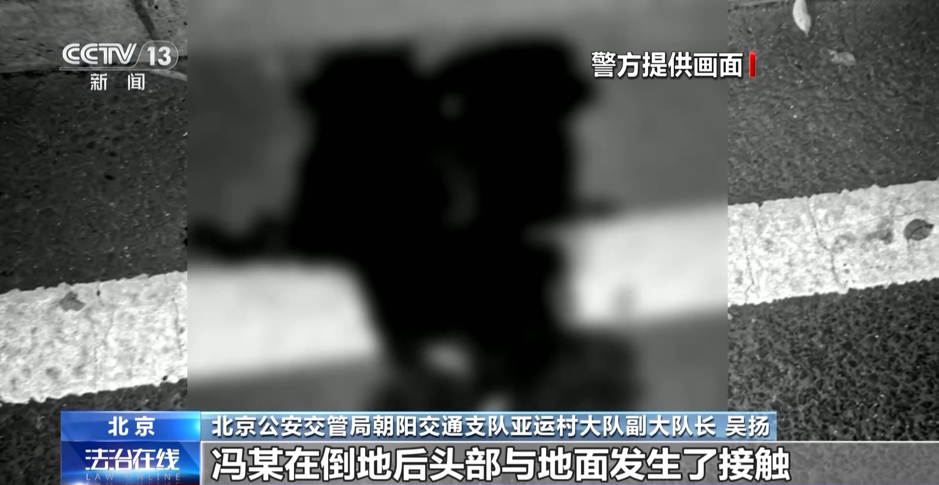 吴扬:冯某在倒地后头部与地面发生了接触。冯某虽然戴上了同事给他递出来的头盔,但是戴头盔期间,应该是没有系头盔的系带,导致倒地的时候,头盔没有固定在头上,发挥出应有的作用。
