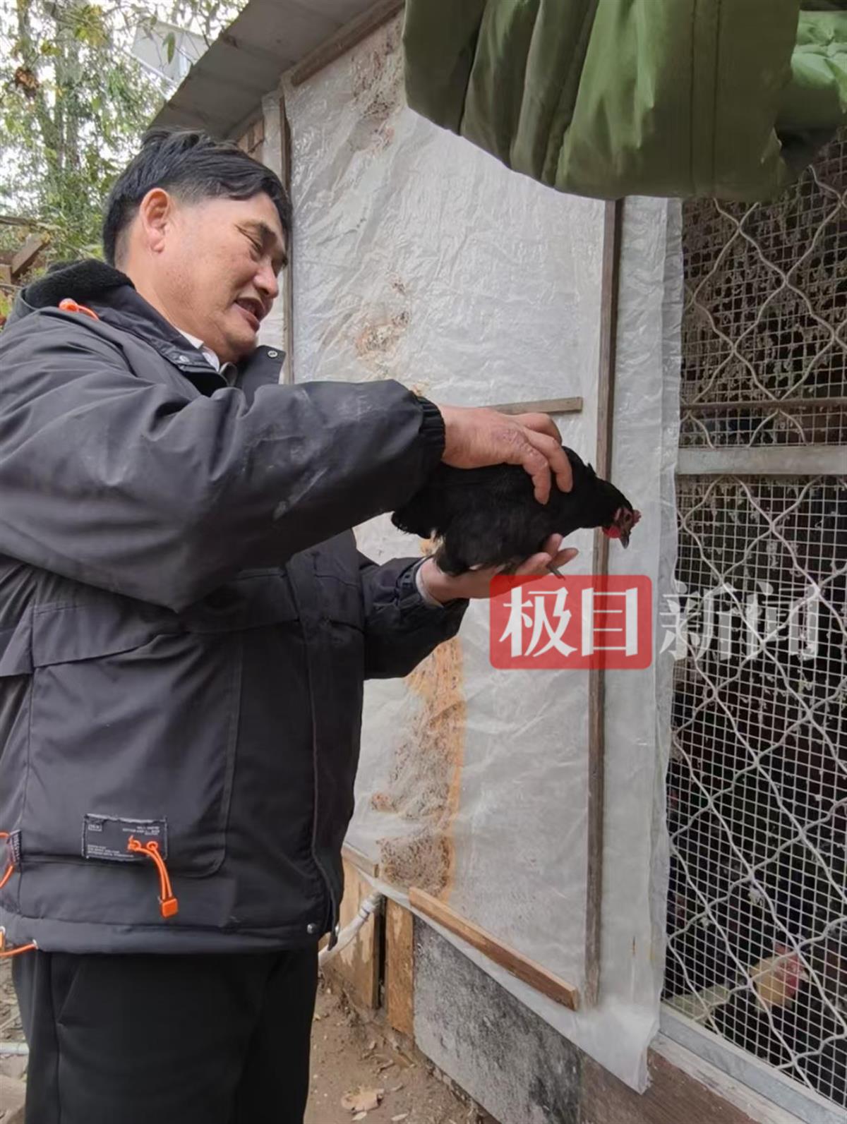 朱之文向极目新闻记者展示他养的鸡