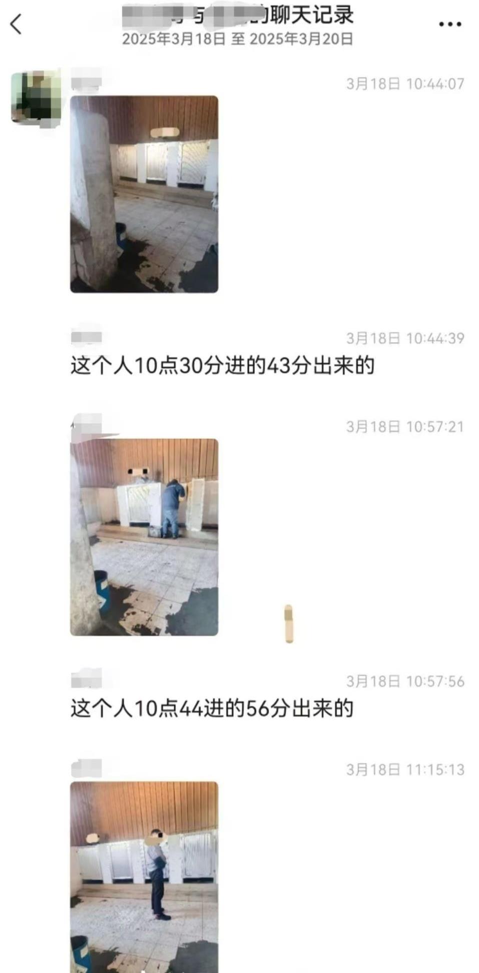 近日,媒体曝光一家企业拍摄员工在厕所的照片,并分别记录他们进出厕所的时间。发布网友告诉媒体,关于此事的聊天记录可追溯至2025年3月,这家企业位于南京市江宁区,要求车间工人如厕时间不超过15分钟,否则将罚款450元,厕所门口还安装了监控设备。
