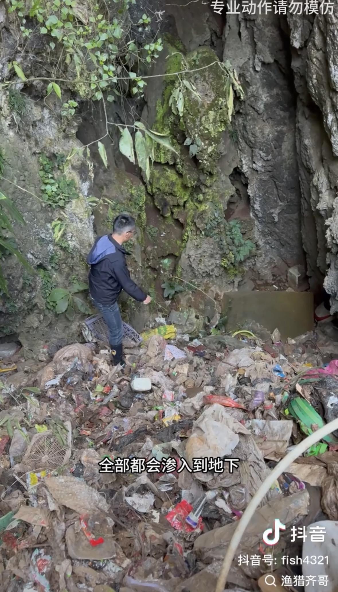 博主“渔猎齐哥”告诉极目新闻记者,他去现场后看到垃圾体量巨大,溶洞都被被灌满,现场很臭,可以从现场判断基本上每天不间断倾倒垃圾,他们也亲眼看到有车辆在此倾倒垃圾,现场探访后,他们已经向当地进行了投诉。当地生态环境部门工作人员告诉记者,当地高度重视情况,28日接到反映后就召开会议并前往现场处置清理。
