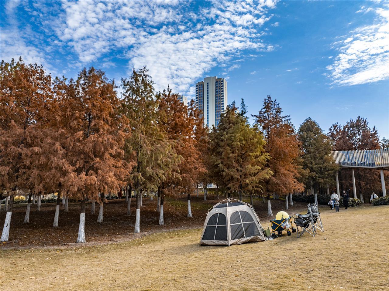 同时,今年该公园还推出了一项惠民举措——公园内所有草坪区域均向市民开放,允许进行露营活动。在红叶树下铺开野餐垫,搭起帐篷,已成为不少市民享受冬日暖阳的新选择。