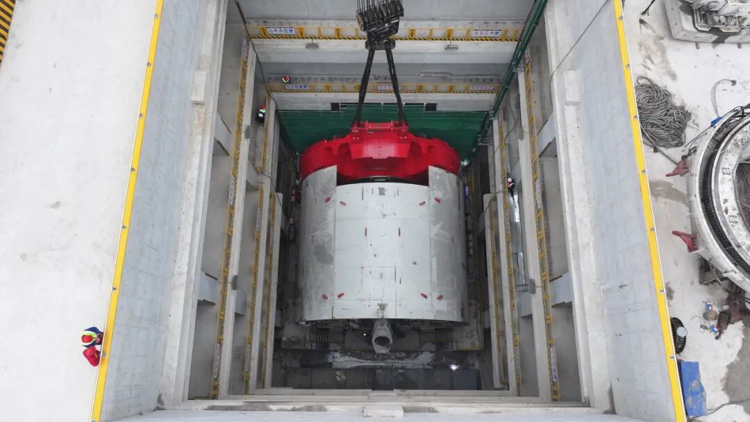 武汉地铁10号线一期工程“通途号”盾构机刀盘成功下井,即将开始穿越长江。通讯员冯鑫鑫 摄