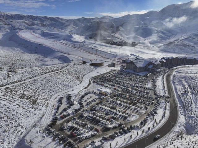↑12月1日拍摄的新疆阿勒泰将军山国际滑雪度假区。新华社发(明庭俊杰摄)