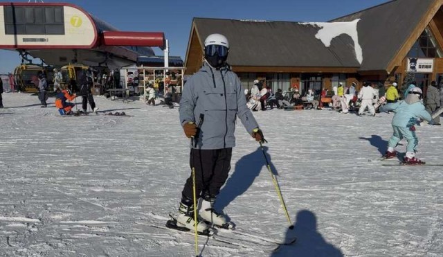 ↑马铭泽在练习双板滑雪。新华社记者 曹奕博 摄