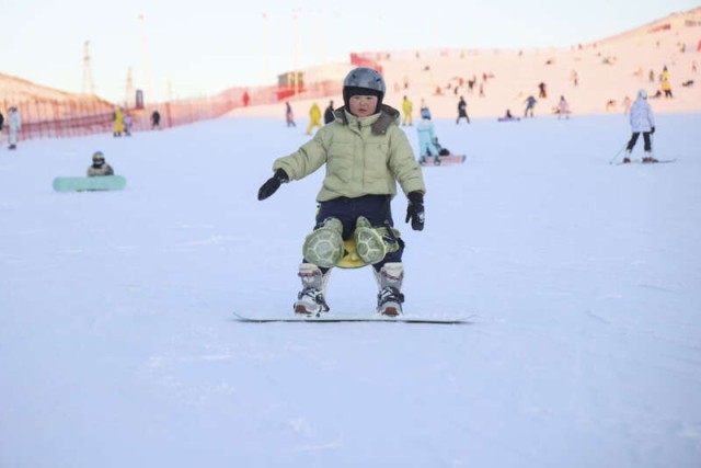 ↑12月1日,一名小学生在滑雪。新华社发(明庭俊杰摄)