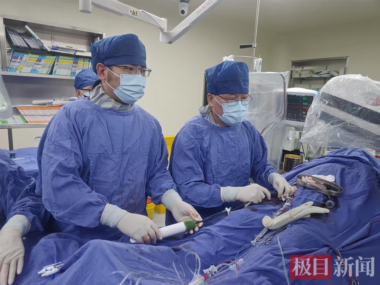 11月19日,在麻醉科夏中元教授、雷少青教授团队的安全护航下,由心血管医院江洪教授、余锂镭教授、黄兵主任医师领衔的手术团队,经患者股动脉入路,成功将人工心脏瓣膜精准输送并释放在病变部位。
