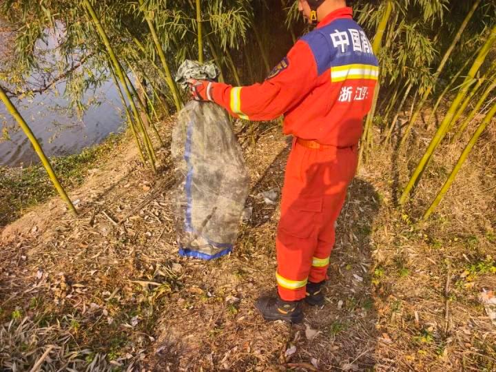 另外一名队员看准时机,迅速把蛇装进了编织袋里。