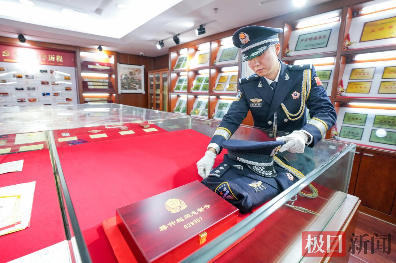 分局政委李国祥对警号和警服进行仔细整理,随后将装有“039357”警号的礼盒盖好。