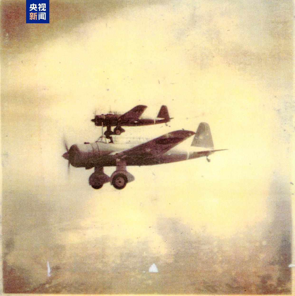 △七三一部队成员樱永孝雄驾驶97式轻轰炸机在南京上空飞行(图片由侵华日军第七三一部队罪证陈列馆提供)